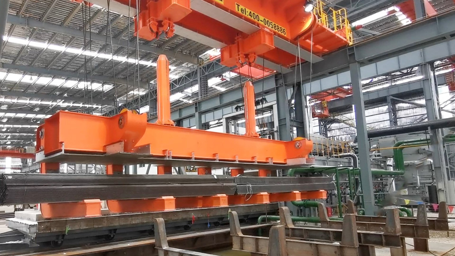 jinnian金年会智能淬火起重机主要用于高温型材或棒材的吊装并进行淬火工艺。