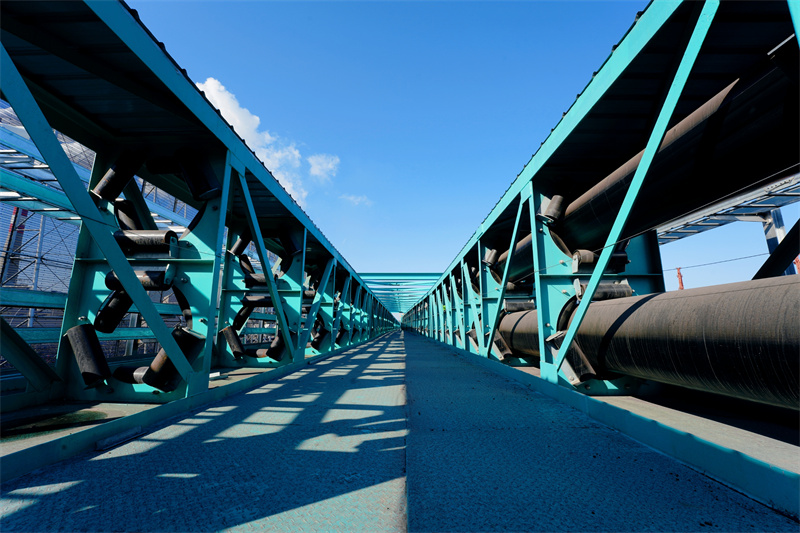 本项目所使用的DG550X627m圆管带式输送机机长:627m;输送量:2500t/h;带速:4.8m/s;管径550mm,为行业内较大规格。